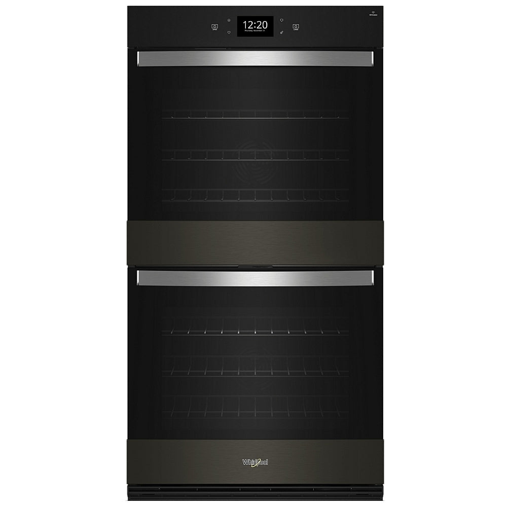 The finish of the Whirlpool WOED7030PV Double Wall Oven is Black Stainless Steel.