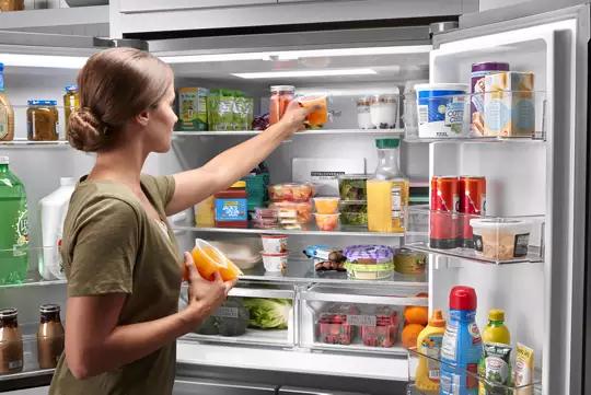 - Flexible organization spaces cut down on clutter, making it easy to store and find everything from gallons of milk to frozen meals and snacks.